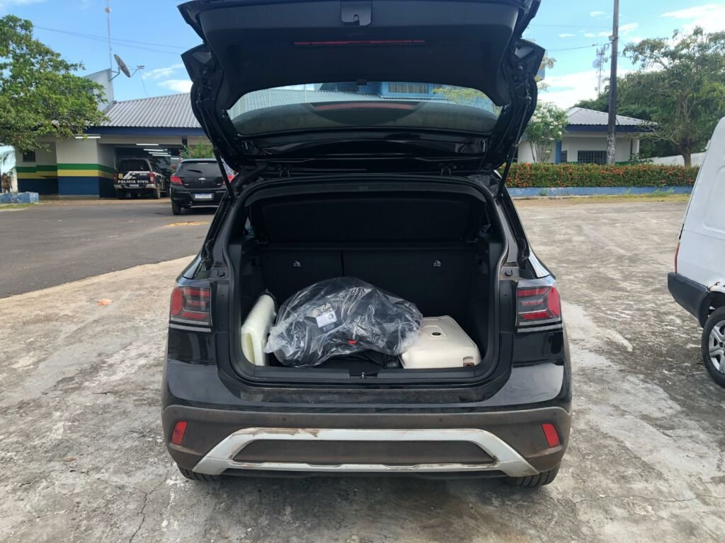 Durante a abordagem, o veículo utilizado pelo casal foi localizado ainda no pátio da maternidade, com enxoval e carrinho de bebê no porta-malas.