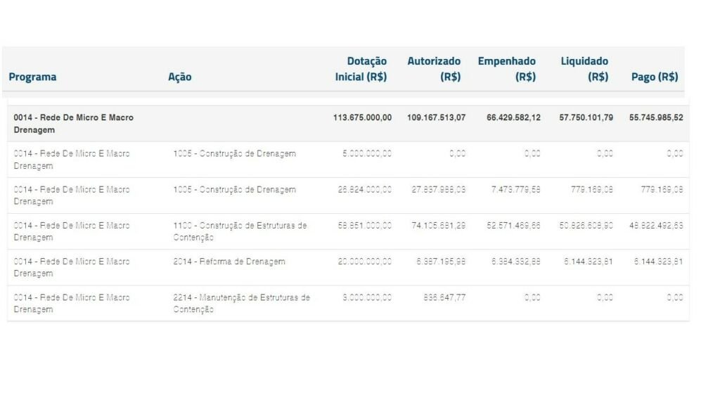 O novo gasto surge em um contexto de altos investimentos já realizados pela prefeitura na área de drenagem. Recentemente, a administração municipal gastou mais de R$ 55,7 milhões em um programa de rede de micro e macrodrenagem, sendo que desse total, R$ 48,8 milhões foram direcionados especificamente para a construção de estruturas de contenção.
