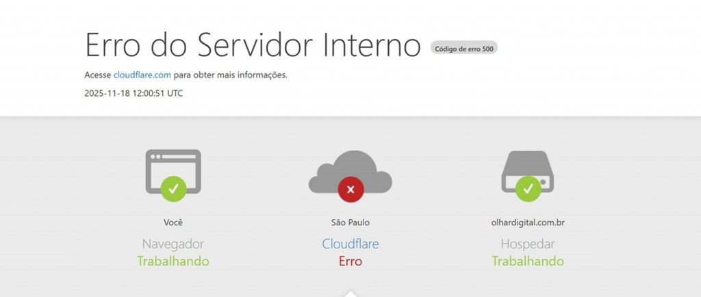 O problema começou por volta das 8h20, quando a empresa detectou um “pico de tráfego incomum” em seus servidores na Califórnia, Estados Unidos. A falha afetou plataformas como X, ChatGPT, Letterboxd e o próprio Olhar Digital, que utilizam os serviços da empresa.