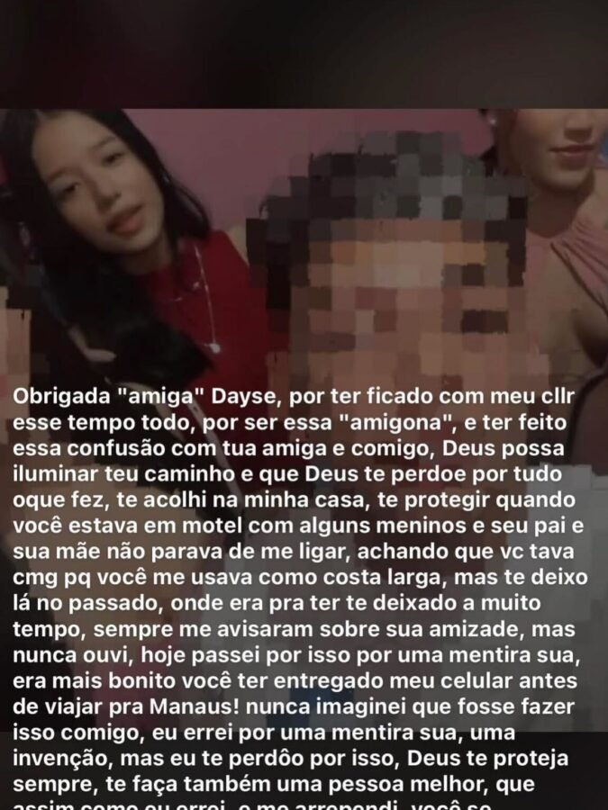 “Eu quero pedir desculpas à Amanda, que não foi ela que roubou meu celular, foi outra pessoa. Tudo não passou de um mal-entendido e eu já paguei pelo que eu fiz com ela. Estou muito arrependida”, declarou a influenciadora, dirigindo-se também à própria família.