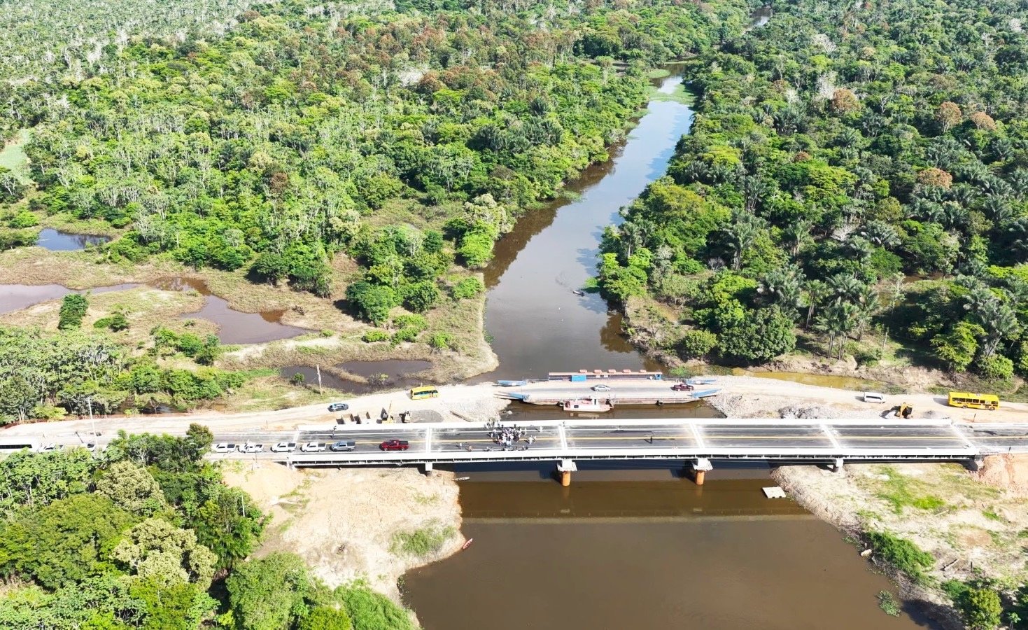 “É uma ponte preparada estruturalmente ao novo tipo de carga sobre a BR-319, as carretas bitrem. Vencemos os desafios e, agora, a ponte está pronta”, afirmou Braga. “Sua entrega significa mais economia, qualidade de vida, mobilidade, logística e segurança para o povo do Amazonas.”