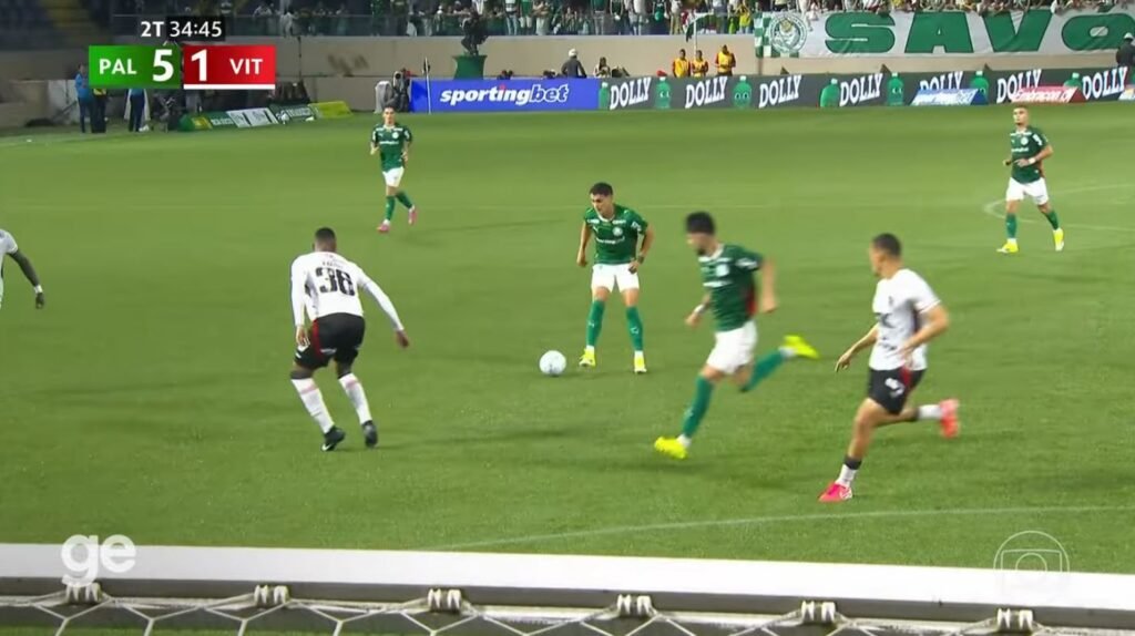 No segundo tempo, o Vitória tentou reagir e descontou aos 10 minutos com Dudu, que entrou no intervalo. Mas a resposta do Palmeiras foi imediata. Aos 17, Allan fez uma jogada individual brilhante e chutou cruzado, marcando o quarto gol. O Verdão ainda acertou a trave com Piquerez e fechou o placar aos 40, com Sosa, em chute de fora da área com desvio.