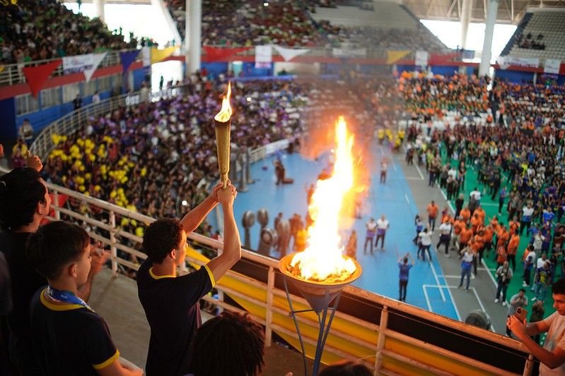 A cerimônia foi marcada por momentos de emoção e entusiasmo, como o juramento dos atletas e a fala das estudantes Nicole Pontes, 15, e Camile Vitória, 10, que representaram a voz dos alunos.