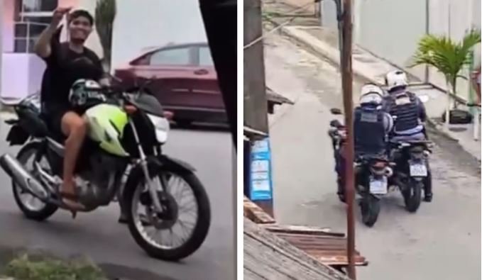 A situação, no entanto, não parou aí. O próprio jovem responsável pelo furto decidiu se exibir. Em vídeos publicados em redes sociais, ele apareceu ostentando a chave da moto e, surpreendentemente, a chave da algema do policial. “Pra quem achou que ia me pegar, tá aqui ó, peguei foi a chave dele, quero ver agora me pegar”, desafiava o rapaz, diretamente para a câmera.