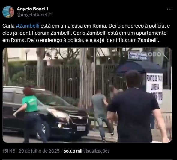 Carla Zambelli está em um apartamento, em Roma. Forneci o endereço à polícia, neste momento a polizia esta identificando Zambelli. pic.twitter.com/UWDg3j7Hen— Angelo Bonelli (@AngeloBonelli1) July 29, 2025