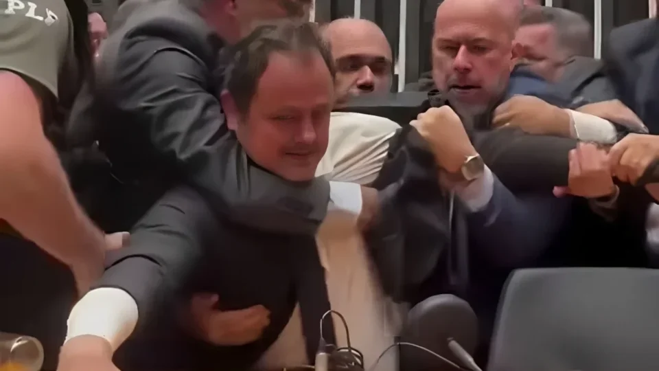 Brasília – A Câmara dos Deputados viveu cenas de tensão e confronto físico no final da tarde desta terça-feira (9). O deputado Glauber Braga (PSOL-RJ) foi retirado à força pela Polícia Legislativa da cadeira da presidência do plenário, que ele ocupava em protesto contra a cassação de seu mandato, prevista para ser votada nesta quarta-feira (10). A deputada Sâmia Bomfim (PSOL-SP), esposa de Glauber, também foi atingida ao tentar intervir. A imprensa foi expulsa do plenário durante a ação e impedida de acompanhar o desenrolar dos fatos de perto.