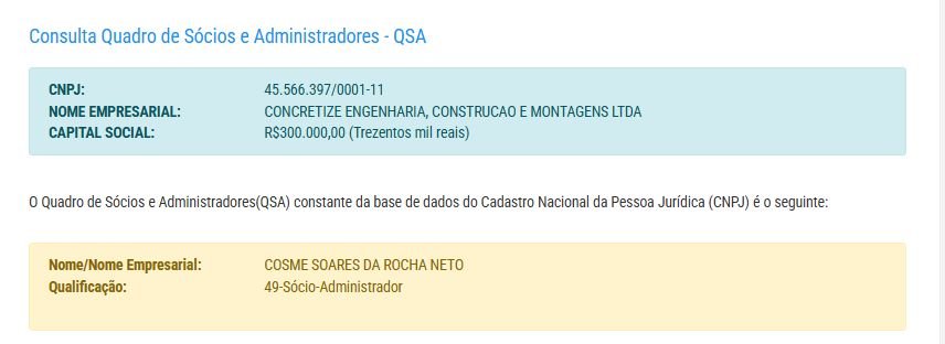 A empresa possui capital social de apenas R$ 300 mil e pertence a Cosme Soares da Rocha Neto.