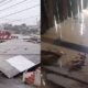 Vídeos gravados por testemunhas mostram momento em que estrutura cede e danos no local; autoridades ainda não se pronunciaram sobre causas...